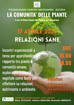 Vi aspettiamo per un incontro esperienziale unico nel cuore di Altura, per esplorare il legame profondo tra piante e comunità. Sarà un'occasione per riflettere insieme su temi come il nutrimento, l'ambiente e il modo in cui costruiamo i nostri legami, usando la natura come nostra guida.