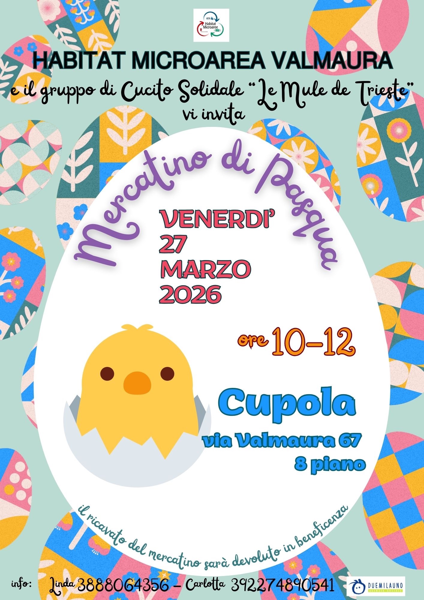 Venerdì 27 marzo HM VALMAURA Mercatino Pasquale le Mule di Trieste ore 10-12.30 in Cupola Via Valmaura 67 - 8 piano