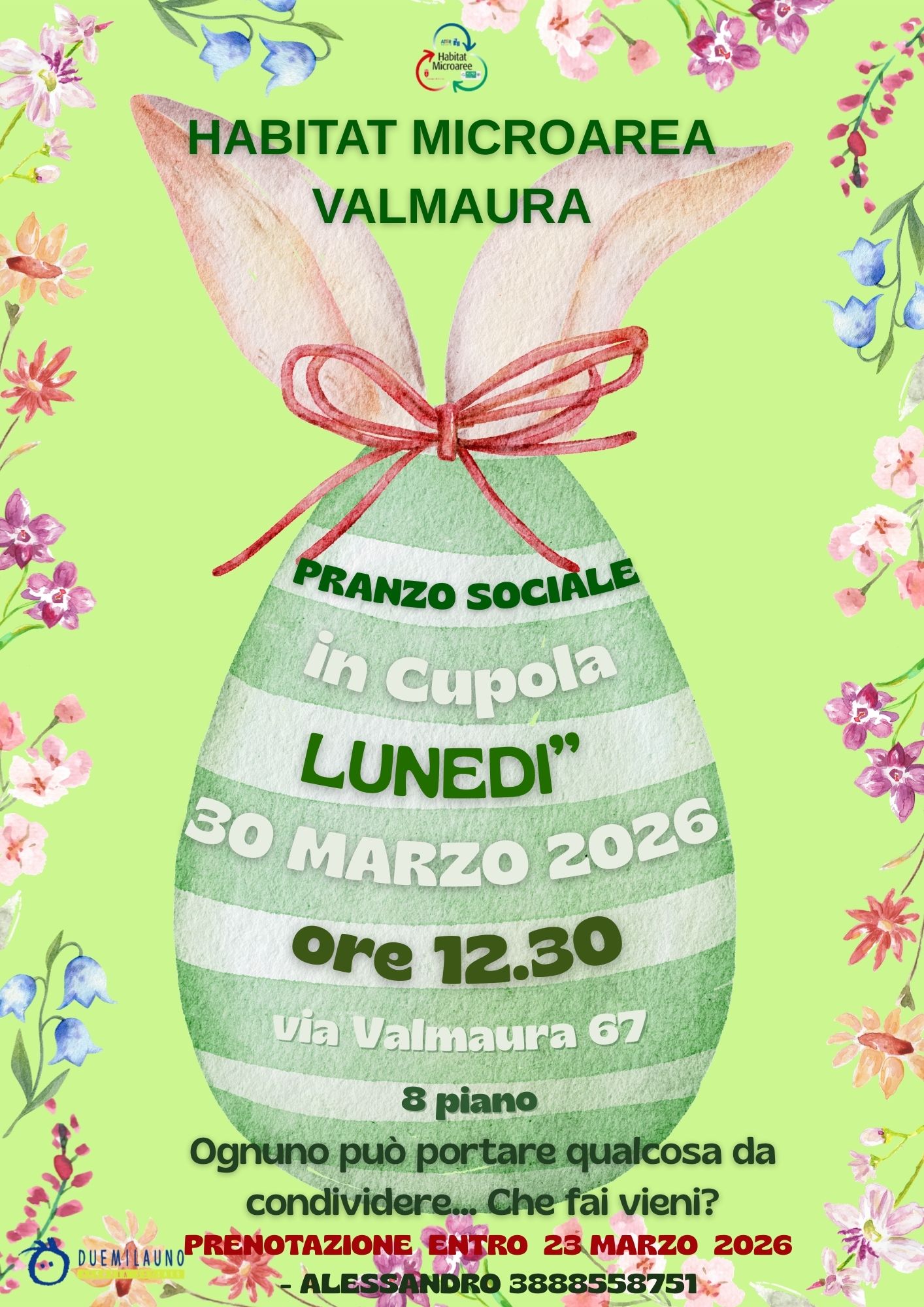 Lunedì 30 marzo HM VALMAURA ore 12.30 Pranzo Sociale di Pasqua (Cest, Sweet Gym e Socialità) in Cupola Via Valmaura 67 - 8 piano