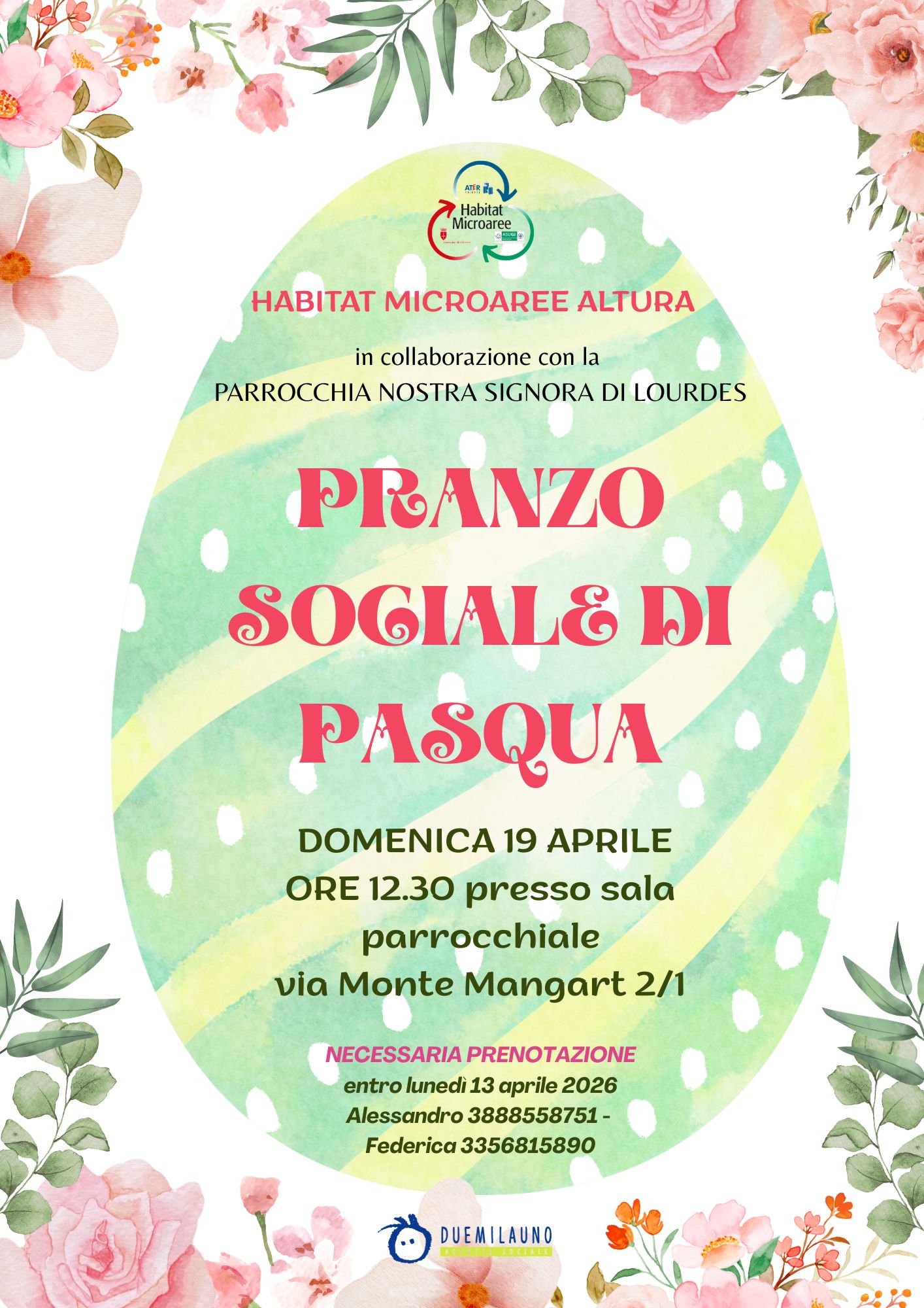 Domenica 19 aprile HM ALTURA Pranzo Pasquale Sociale in Parrocchia Altura Via Monte Mangart 2/1
